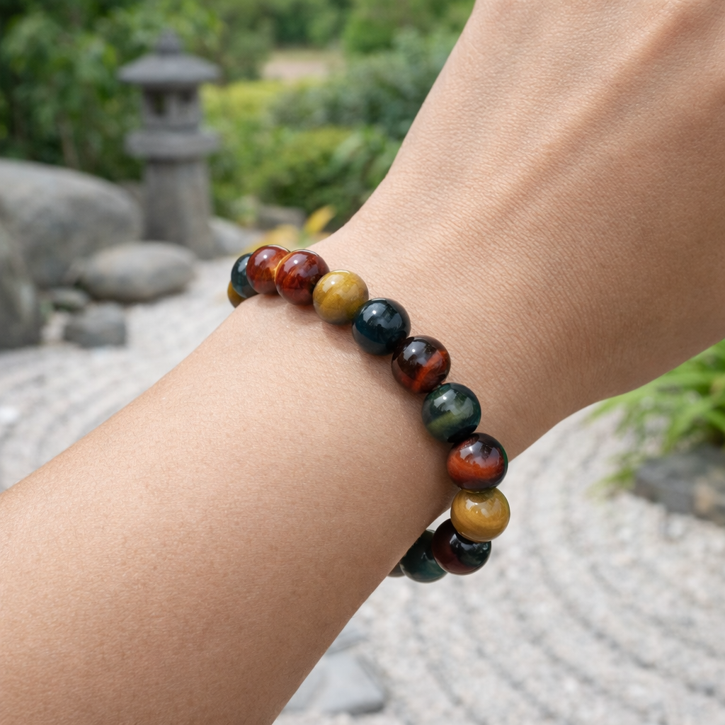 L'œil multiple est un mélange de 3 variétés de pierres : l'œil de faucon, l'œil de taureau et l'œil de tigre. Un bijou type bracelet fabriqué avec les 3 sortes de pierres offre un maximum de protection et de vertus à son porteur.